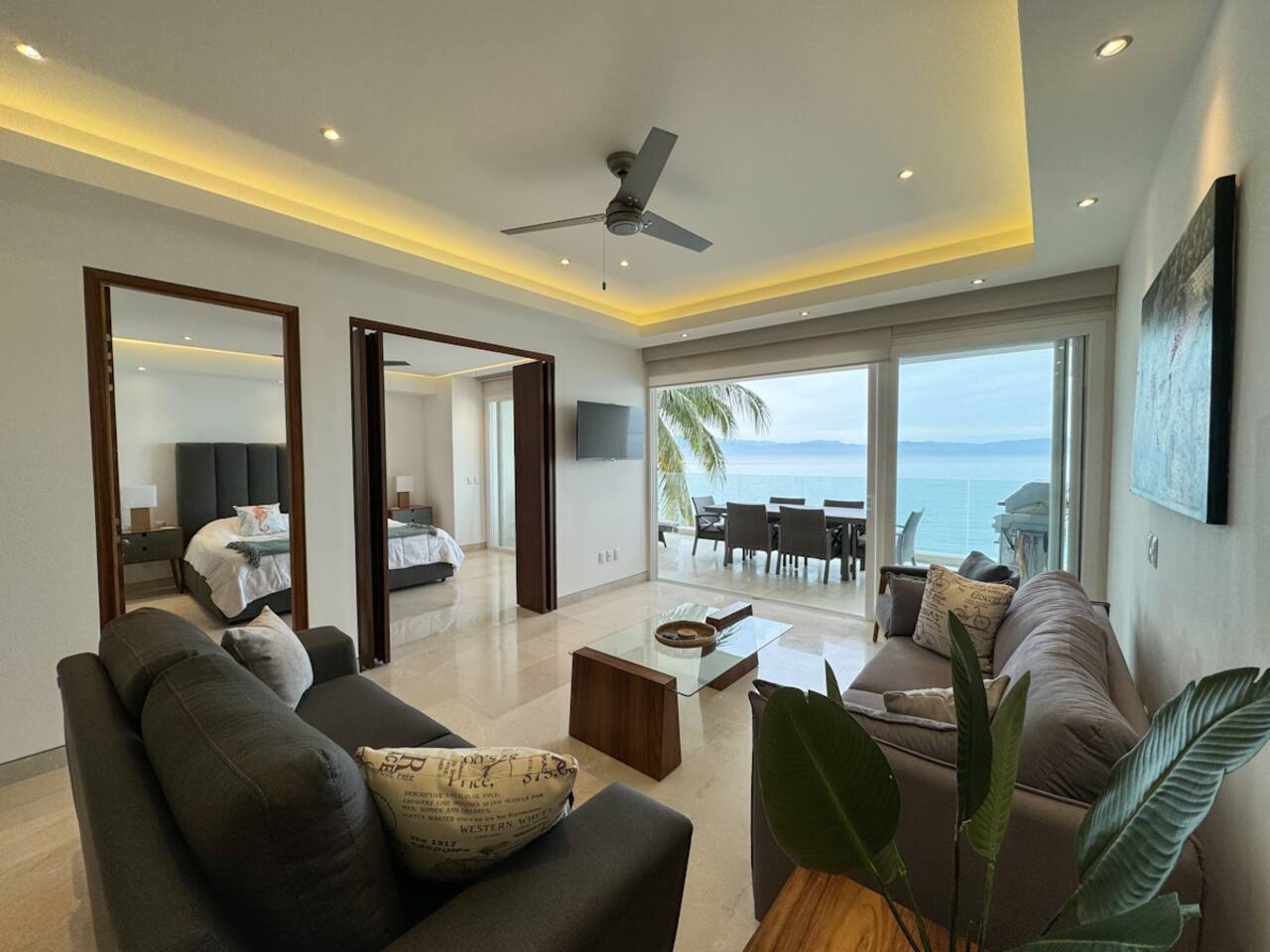 Oceanfront escape with unbeatable views! This stylish 2-bedroom, 2.5-bath condo in Bucerías offers direct beach access, a spacious terrace with BBQ, and access to 2 pools and a gym — everything you need for the perfect getaway.